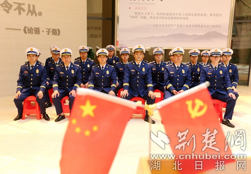 圖為消防指戰(zhàn)員全體學(xué)習(xí)黨章現(xiàn)場。通訊員 朱燕林攝