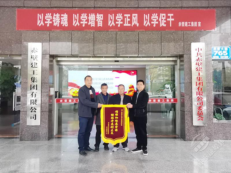 11月20日,神山鎮(zhèn)鐘鳴村村支書(shū)易正軍帶領(lǐng)村委會(huì)成員及村民代表,將一面寫(xiě)著“精雕細(xì)琢展宏圖,繼往開(kāi)來(lái)創(chuàng)未來(lái)”的錦旗送到赤壁建工集團(tuán),以表達(dá)他們對(duì)建工集團(tuán)水建公司在該村高標(biāo)準(zhǔn)農(nóng)田改造工作中,所付出的辛勤勞動(dòng)的感謝之情。